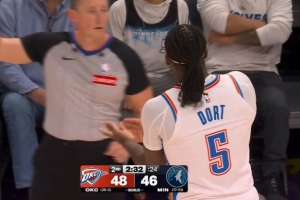 GIF-多特与戈贝尔篮板卡位推搡被吹犯规,麦丹同时三分还命中