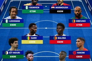 中场/边锋:萨尔(塞内加尔,3500万欧)、巴莱巴(喀麦隆,6000万欧)、卢克曼(尼日利亚,4000万欧)、姆伯莫(喀麦隆,7500万欧)