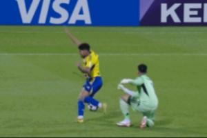 比赛第50分钟,阿布扎比统一沙姆西逆天大脚抡空,随后拉倒对手,VAR介入沙姆西吃到“红点”套餐,但随后布拉希米的点球却打在横梁上。