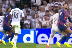 身体层面,皇马强于巴萨,这在拼抢高空球和身体对抗中体现明显。米利唐跑动中从巴尔德脚下断球、巴尔韦德多次与拉什福德一对一较量成功,都是典型的画面。最糟的是1-2的那次失球:孔德被维尼修斯突破,巴尔德在跳跃争顶中被贝林厄姆压制,库巴西又在另一回合的高空球争夺中失位,贝林厄姆最终得以轻松射门。德容被赫伊森分散了注意力,放任贝林厄姆完成了完成射门。在1-0的那次进攻中,贝林厄姆也轻松摆脱佩德里,一路深入后找到姆巴佩完成射门。