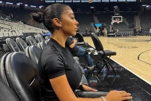 体育资讯1月6日讯 索汉的女友Mya Mills更新社媒,晒出了她观看马刺上一场对阵开拓者的比赛的动态。
