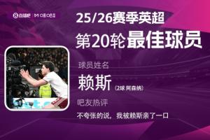 2025-2026赛季英超火热进行中,体育资讯和咪咕体育联合发起每轮英超最佳球员评选活动!第20轮评选结果已经出炉,赖斯双响帮助阿森纳3-2力克伯恩茅斯、6分领跑,当选本轮英超最佳!