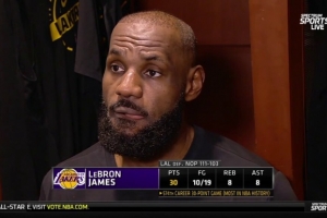 体育资讯1月7日讯 今日,湖人111-103客场击败鹈鹕,迎来三连胜。赛后,湖人前锋詹姆斯接受了采访。