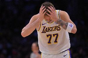 体育资讯1月10日讯 NBA常规赛,湖人101-105不敌雄鹿。此役东契奇出战36分04秒,25中8,其中三分6中4,罚球8中4,得到24分9篮9助攻2抢断3失误,最后时刻扑防小波特三分领到个人第6犯毕业。
