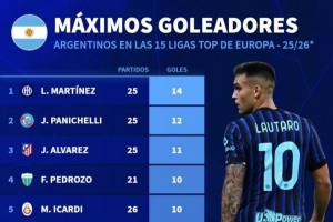 本赛季欧洲联赛阿根廷球员射手榜(欧洲前15联赛):